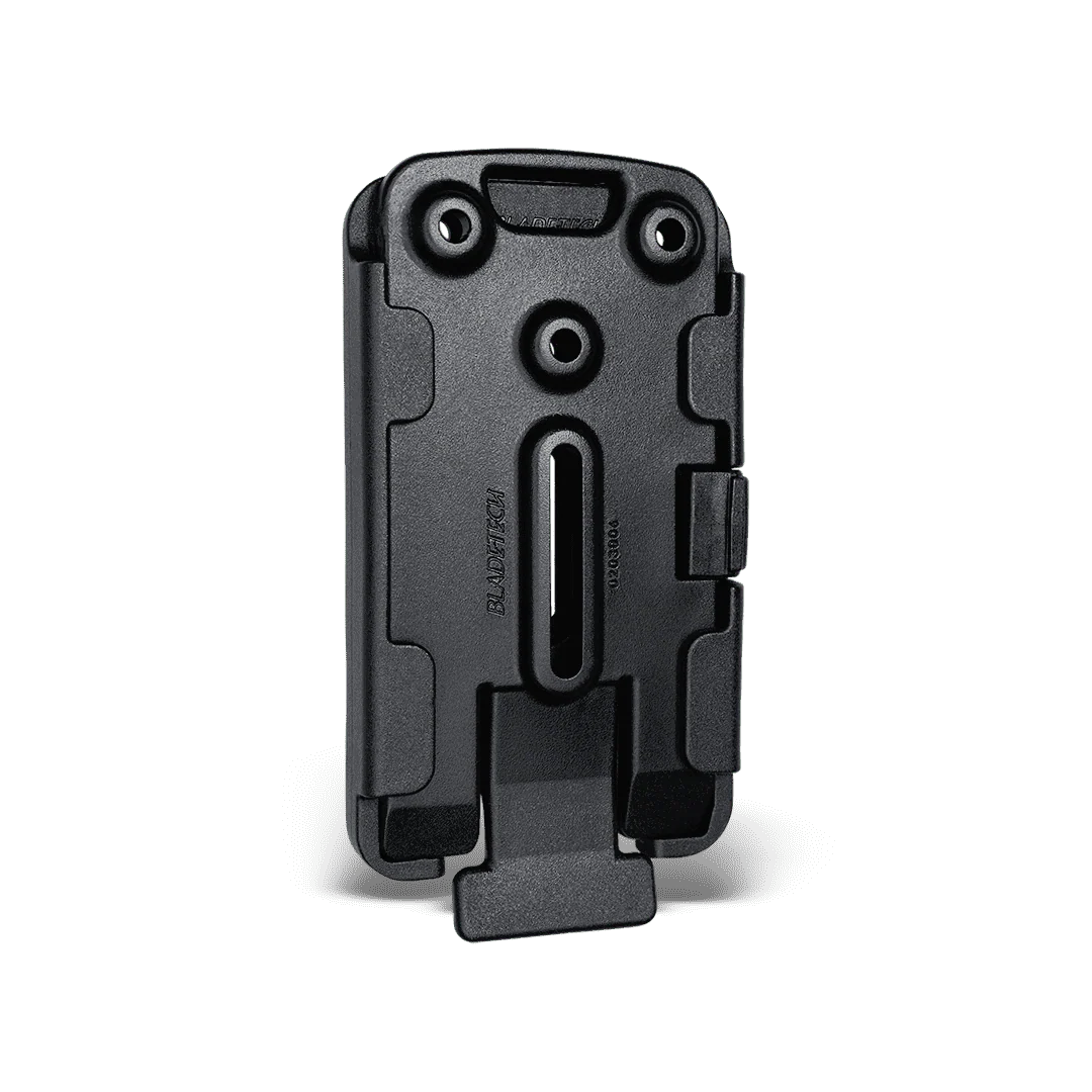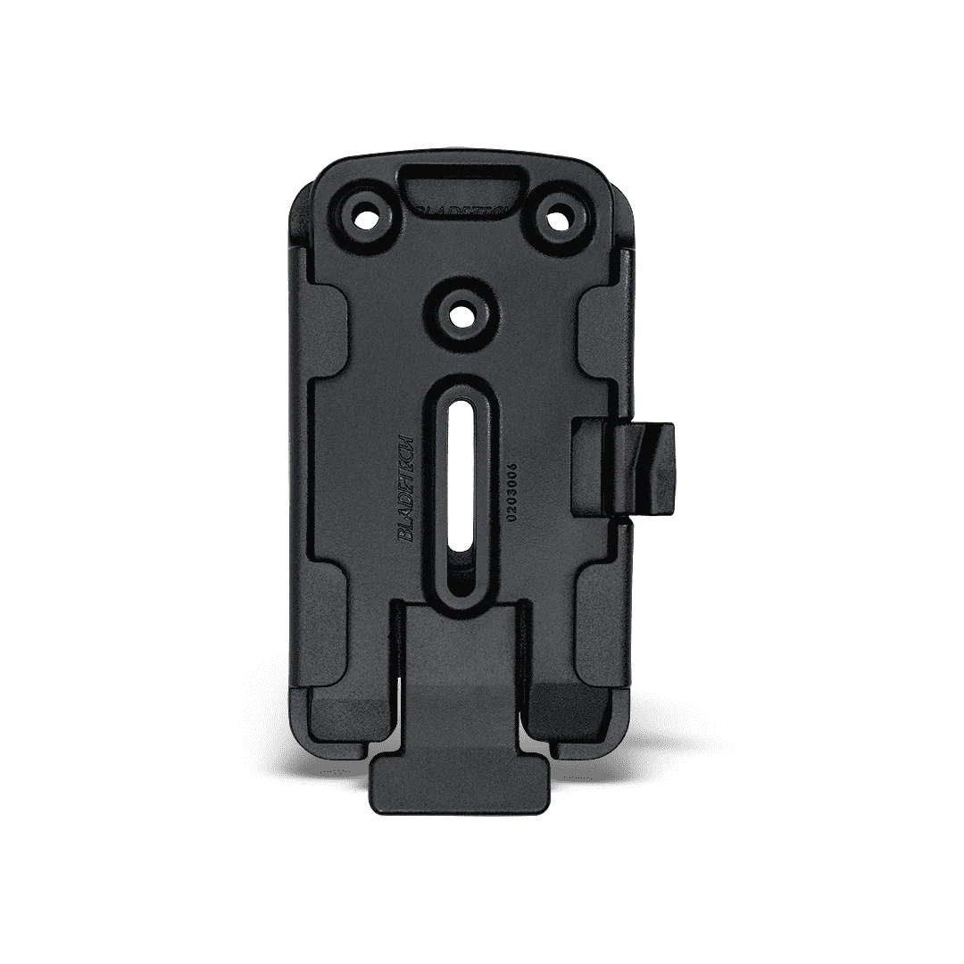 Connect the TMMS Insert Plate directly to the existing mounting holes of your Blade-Tech Holster, Mag Pouch, or compatible carry gear. Connect a corresponding receiver plate to the Tek-Lok, Molle-Lok, Drop Leg Platform, or any of our other attachments.